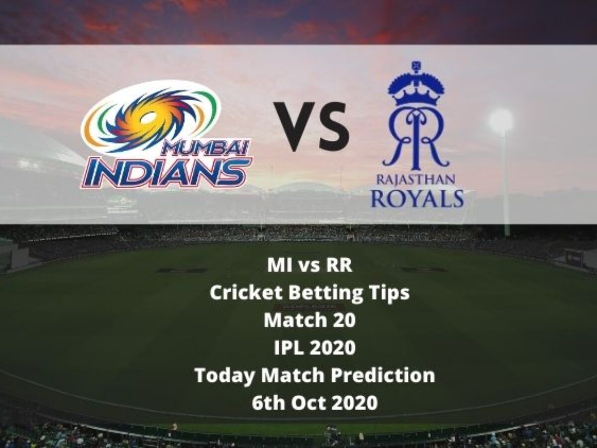 Mi Vs Rr Cricket Betting Tips Match 20 Ipl 2020 Today Match Prediction 6th Oct 2020   Our football and soccer predictions and betting tips are posted three days in advance of matches.